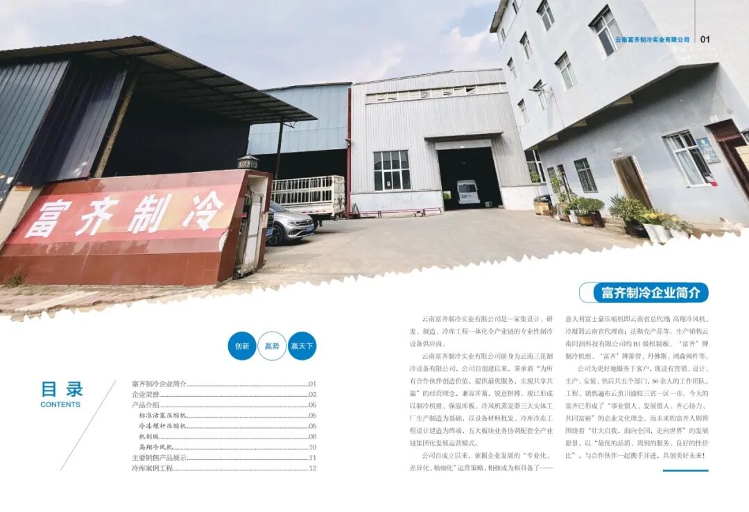 展商推荐 | 云南富齐制冷实业有限公司盛装亮相CCE2025中国冷链产业(昆明)博览会发表时间:2025-10-14 15:59 2025年11月20日-22日,昆明滇池国际会展中心。云南富齐制冷实业有限公司盛装亮相第二届中国冷链产业(昆明)博览会,诚挚邀请您莅临展位参观指导! 云南富齐制冷实业有限公司是一家集设计、研发、制造、冷库工程一体化全产业链的专业性制冷设备供应商。 云南富齐制冷实业有限公司前身为云南三花制冷设备有限公司,公司自创建以来,秉承着“为所有合作伙伴创造价值,提供最优服务,实现共享共赢”的经营理念,兼容并蓄,锐意拼搏,现已形成以制冷机组、保温库板、冷风机蒸发器三大实体工厂生产制造为基础,以设备材料批发、冷库冷冻工程设计建造为终端,五大板块业务协调配套全产业链集团化发展运营模式。 ![]() 公司自成立以来,依据企业发展的“专业化、差异化、精细化”运营策略,相继成为和具备了——意大利富士豪压缩机机云南省总代理;高翔冷风机、冷凝器云南省代理商;法斯克产品等。生产销售云南同润科技有限公司的B1级机制板、‘富齐’牌制冷机组、‘富齐’牌排管、丹佛斯、鸿森阀件等。 ![]() 公司为更好地服务于客户,现设有营销、设计、生产、安装、售后共五个部门,50余人的工作团队,工程、销售遍布云贵川渝桂三省一区一市。今天的富齐已形成了“事业留人、发展留人、齐心协力、共同富裕”的企业文化理念。而未来的富齐人则将围绕着“壮大自我,面向全国,走向世界”的发展愿景,以“最优的品质、周到的服务、良好的性价比”,与合作伙伴一起携手并进,共创美好未来! ![]()